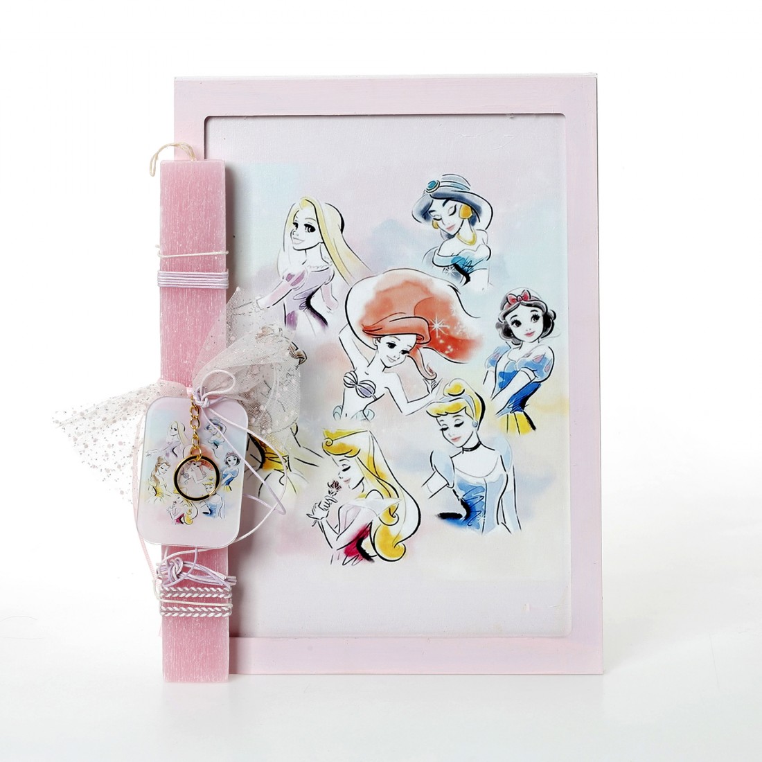 Πασχαλινή λαμπάδα με θέμα disney σε εκτυπωμένη ξύλινη κορνίζα.