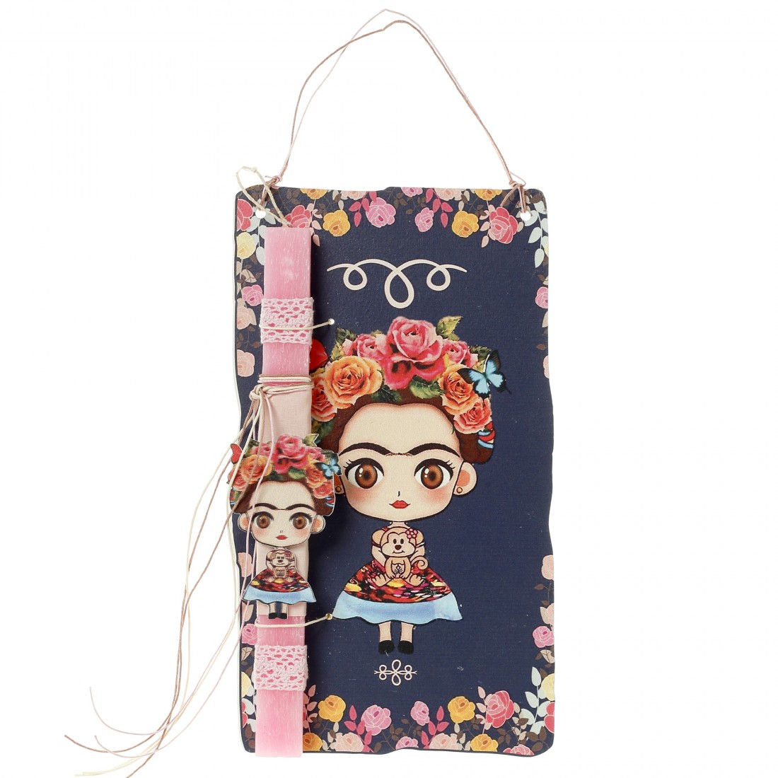 Πασχαλινή Λαμπάδα με τυπωτό σχέδιο Frida Kahlo.
