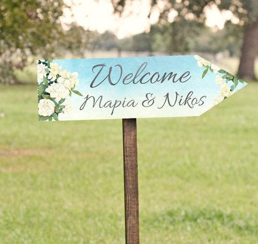 Πινακίδα Γάμου Βέλος Watercolor Floral (40x15cm) | 5531124A