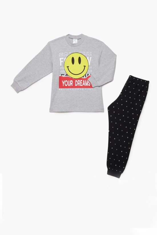 Πιτζάμα Βρεφική – Παιδική Χειμερινή με Τύπωμα Let me Sleep Γκρι Βαμβακερή 100% | Pretty Baby