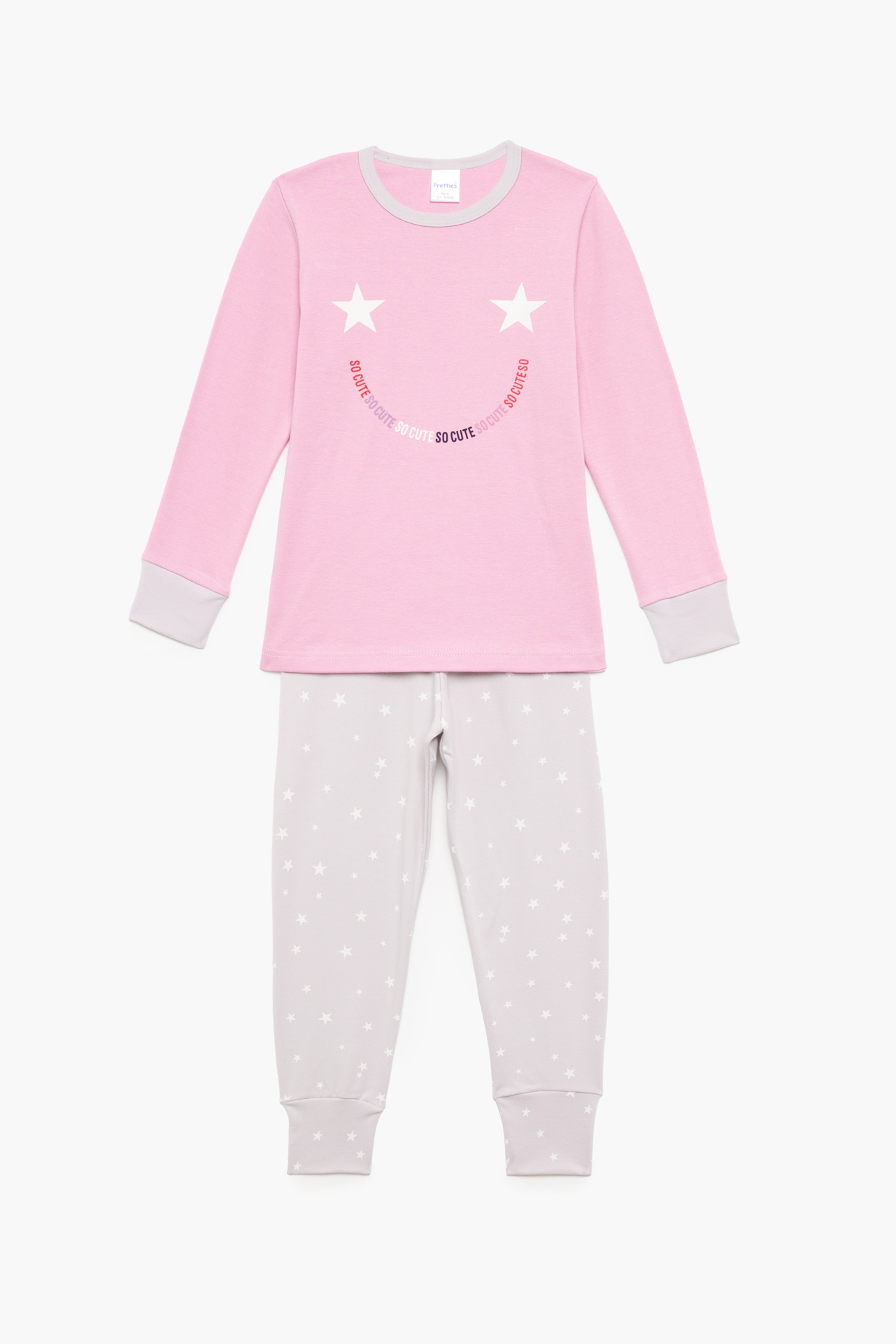 Πιτζάμα Παιδική Χειμερινή με Τύπωμα Good Morning για Κορίτσι Ροζ-Γκρι, Βαμβακερή 100% – Pretty Baby