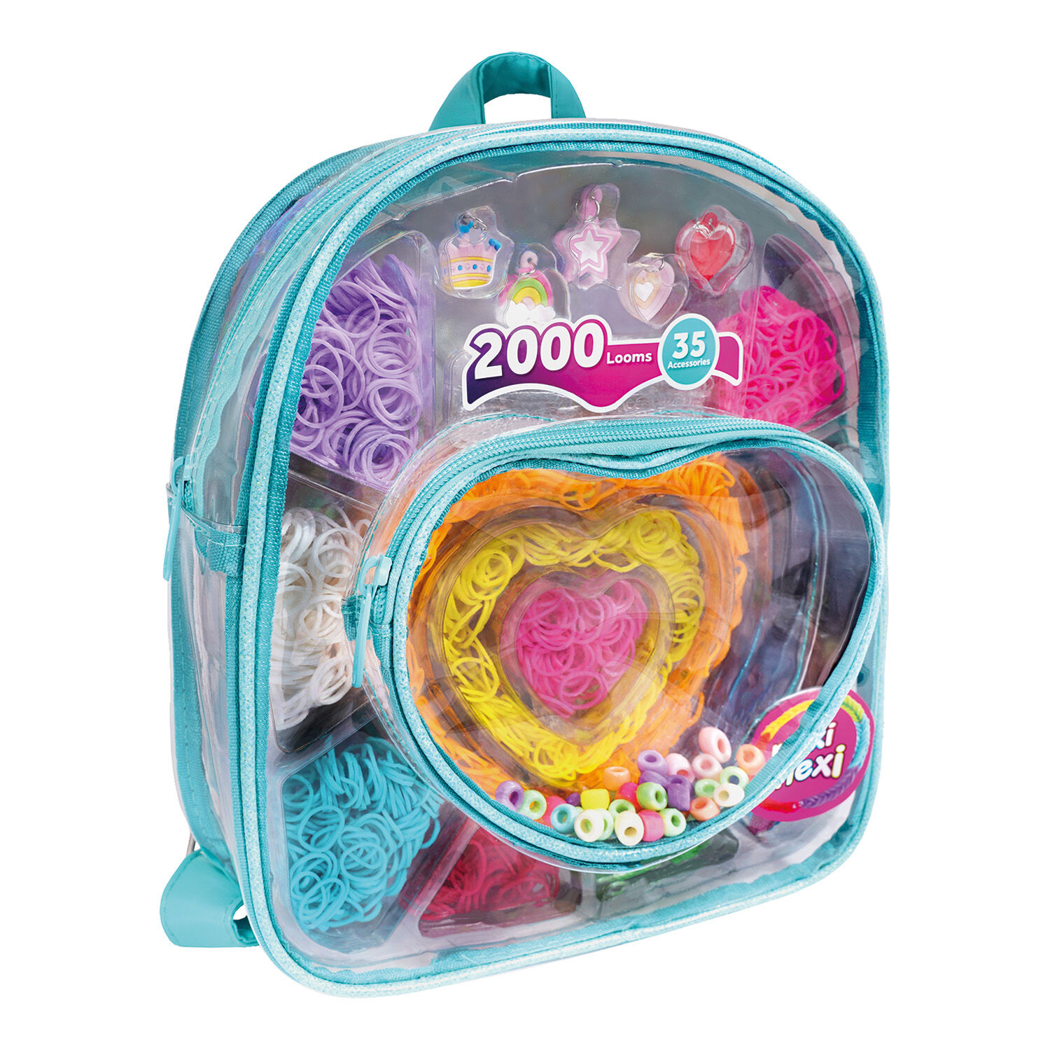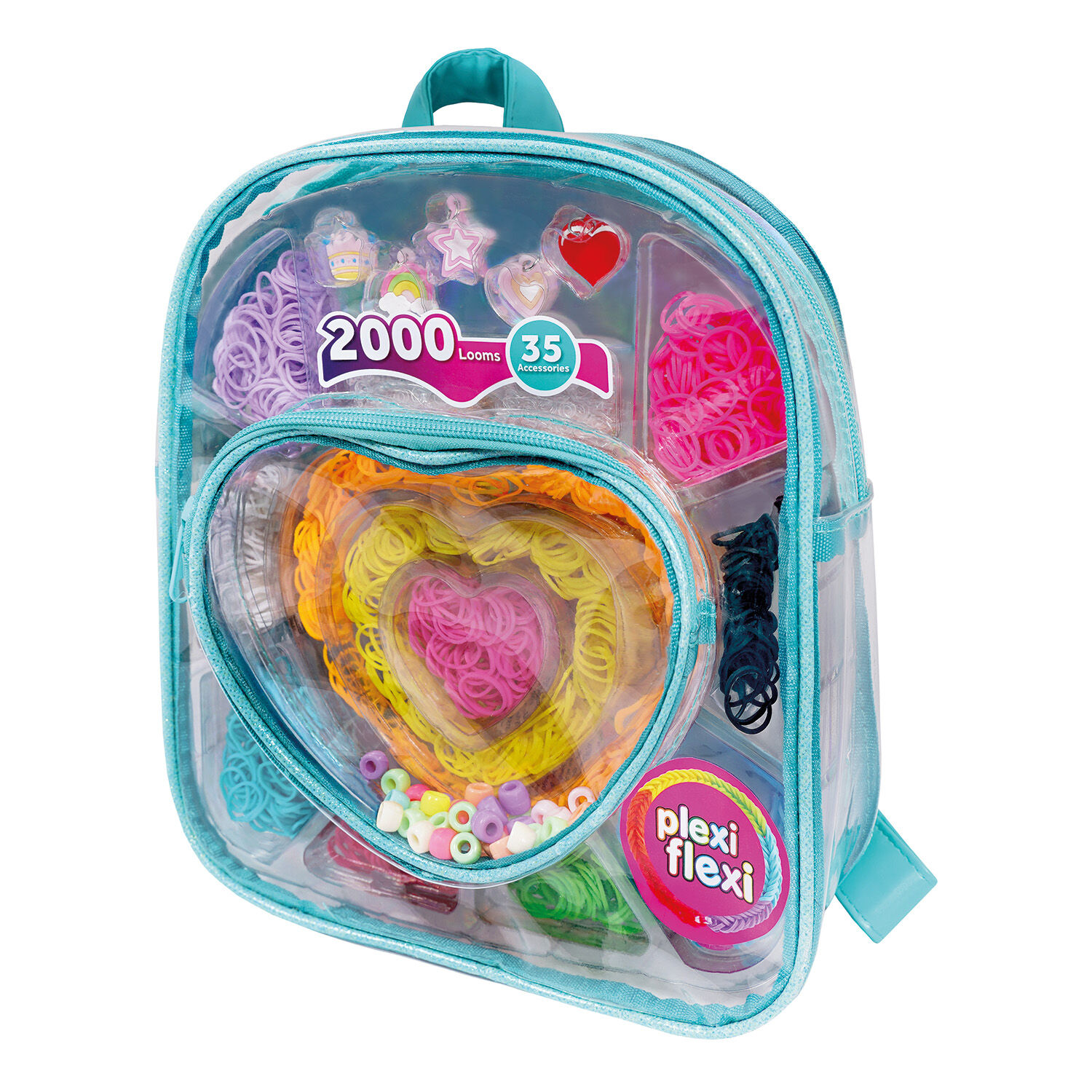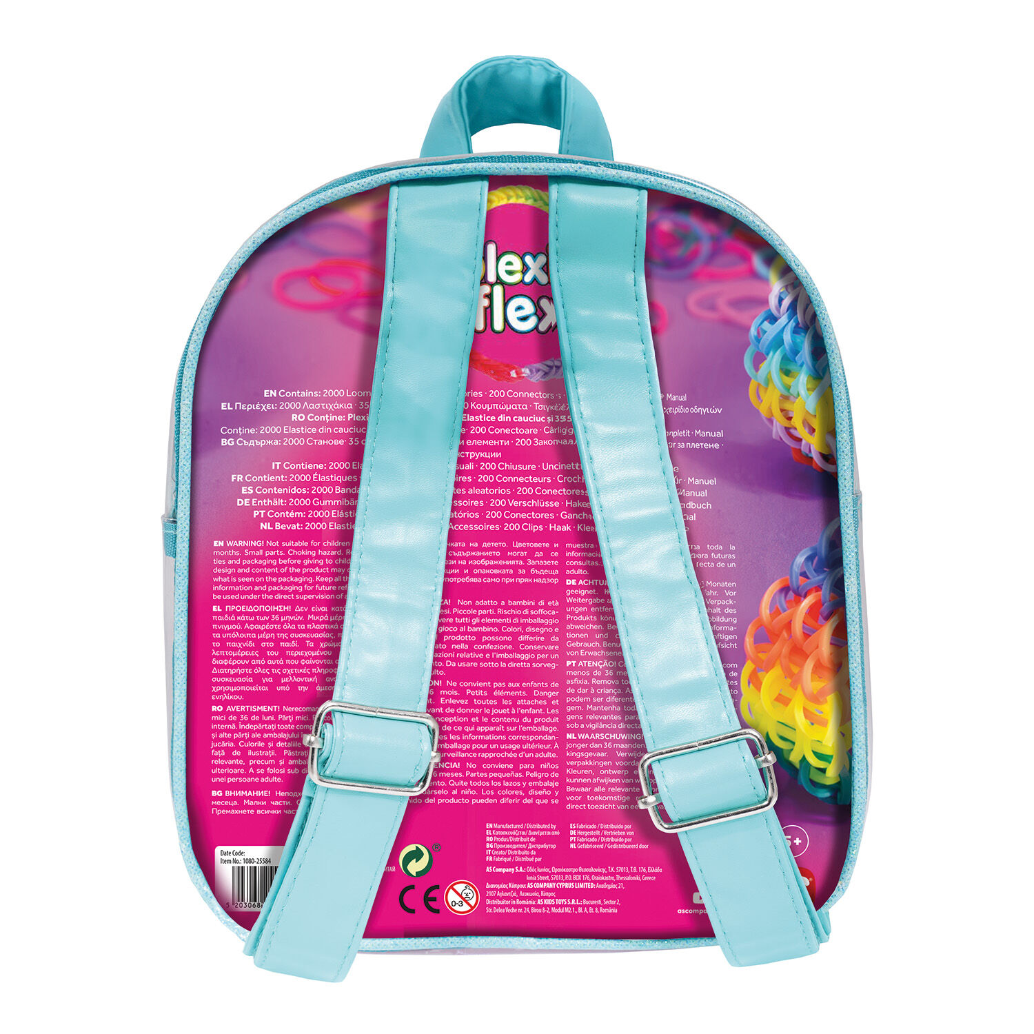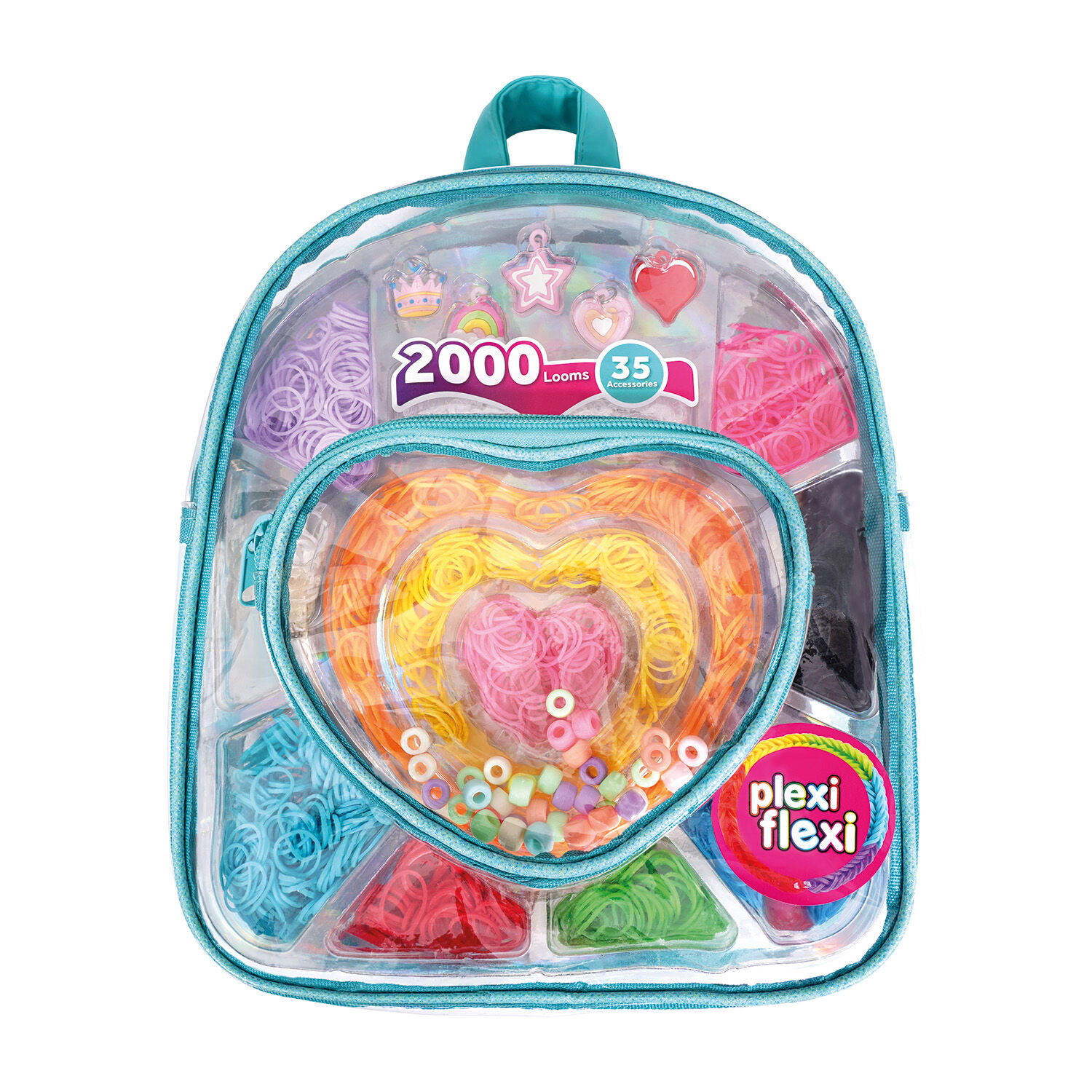 Σακίδιο πλάτης με 2000 πολύχρωμα λαστιχάκια, 5 αξεσουάρ και 30 χάντρες για διακόσμηση. Δημιουργήστε μοναδικά και πολύχρωμα βραχιολάκια, δαχτυλίδια, μπρελόκ και άλλα αξεσουάρ και κάνετέ τα ακόμα πιο εντυπωσιακά προσθέτοντας πολύχρωμα αξεσουάρ σε μοναδικά σχέδια. Ιδανικό για παιδιά που αγαπούν τις χειροτεχνίες και θέλουν να εκφράσουν τη δημιουργικότητά τους. Διατίθεται σε μοδάτο σακίδιο πλάτης το οποίο διευκολύνει το παιδί να πάρει μαζί του όλα τα λαστιχάκια και τα αξεσουάρ του και να φτιάξει οπουδήποτε φανταστικά βραχιολάκια παρέα με τους φίλους του. Μπορεί επίσης να χρησιμοποιηθεί για οτιδήποτε άλλο θέλει το παιδί στην καθημερινότητά του και να είναι πάντα στυλάτο.