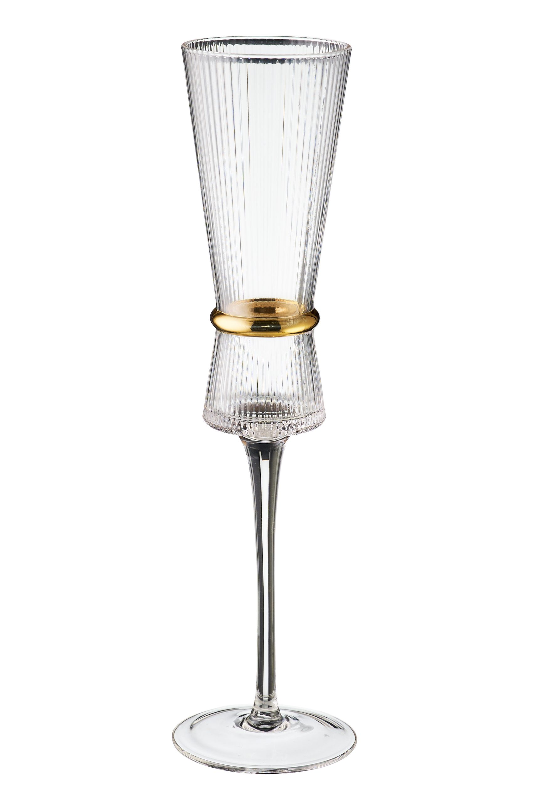 Ποτήρι σαμπάνιας γυάλινο ανάγλυφο με χρυσό δαχτυλίδι