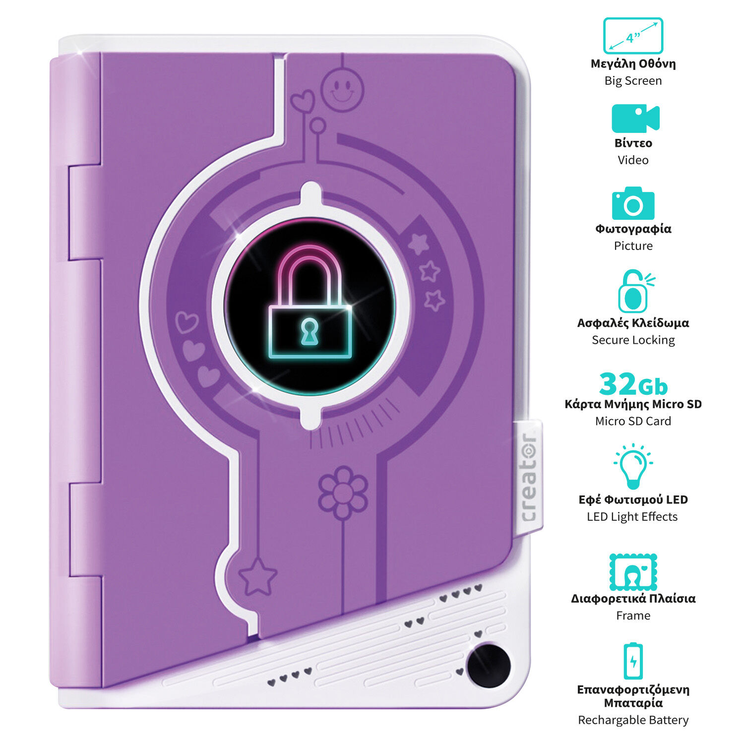 Κράτησε τα μυστικά σου ασφαλή σε βίντεο με Το Ηλεκτρονικό Ημερολόγιο Secret Creator! Ξεκλείδωσε το ημερολόγιό σου με το δακτυλικό σου αποτύπωμα και κατάγραψε τις καθημερινές σου περιπέτειες σε βίντεο.