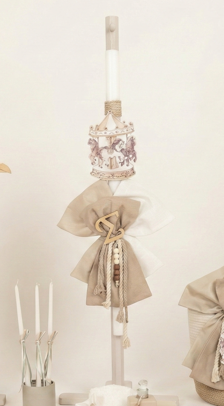 Σετ Βάπτισης για Αγόρι με Θέμα Καρουζέλ Μπεζ-Offwhite 26168