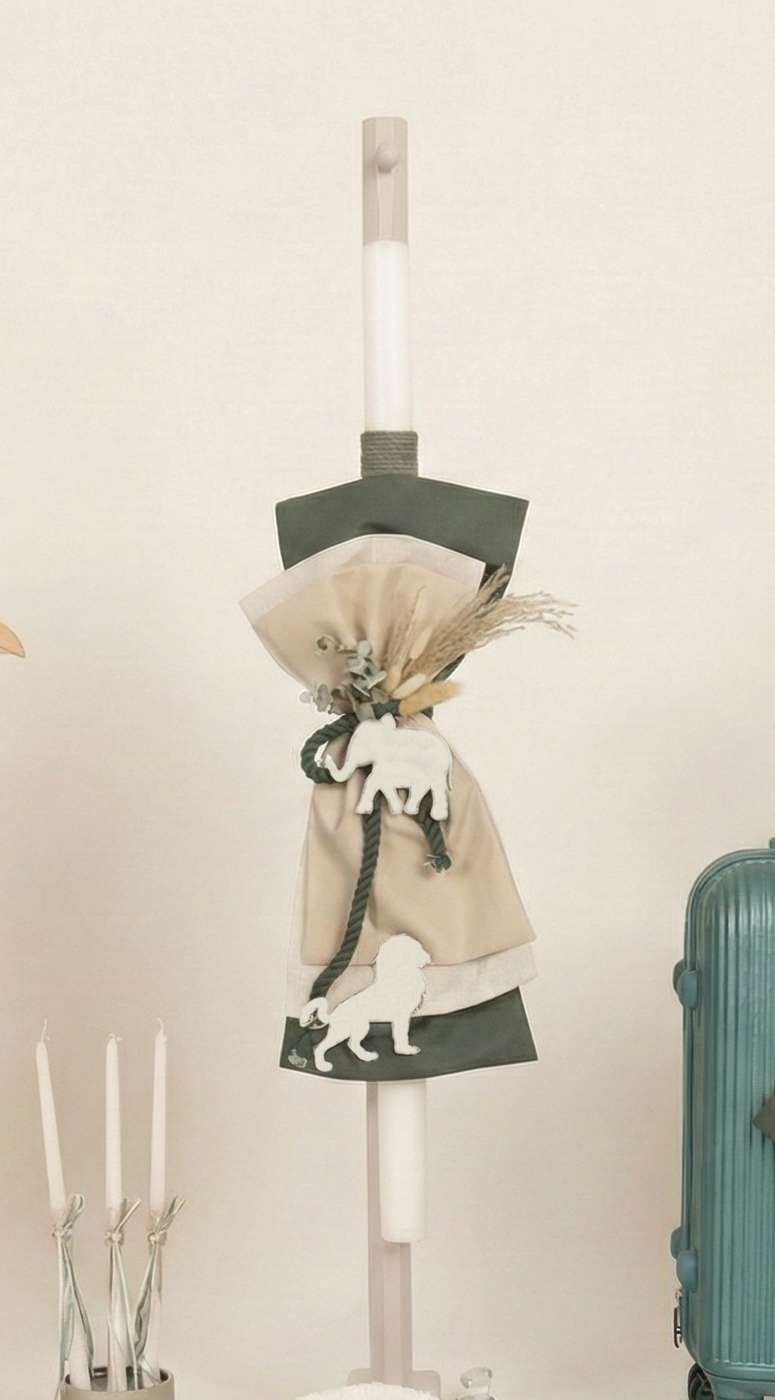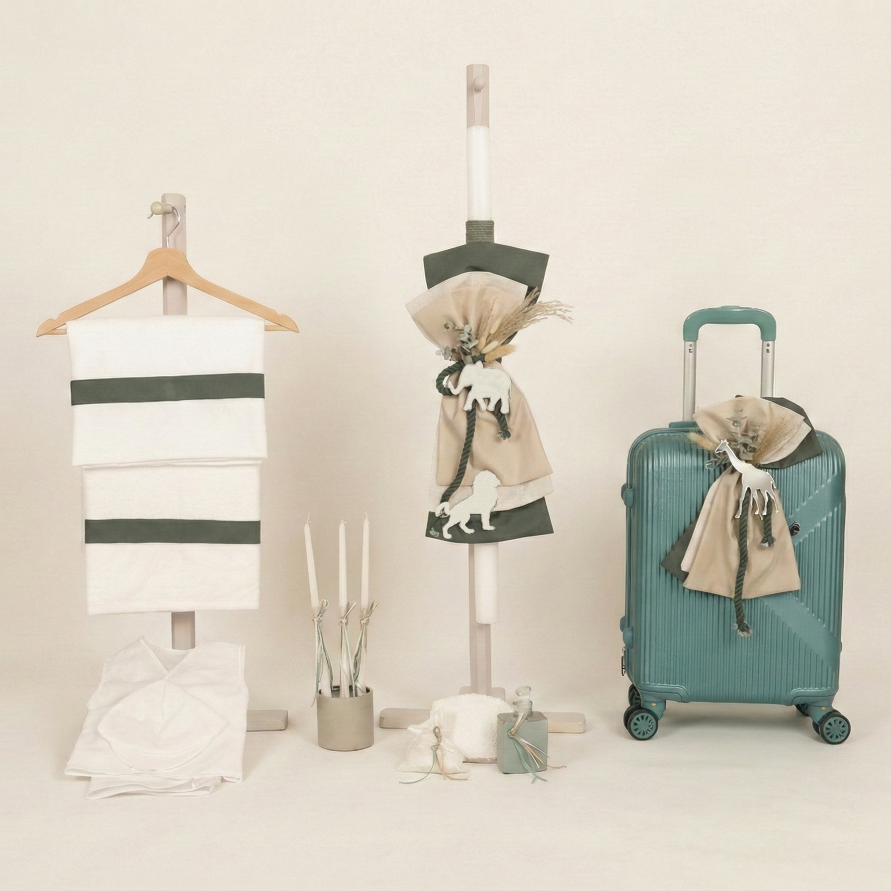Σετ Βάπτισης για Αγόρι με Θέμα Ζωάκια της Ζούγκλας Χακί-Εκρού-Μπεζ 26157