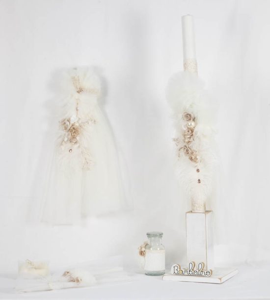 Το σετ αποτελείται από την λαμπάδα, το μπραντς και το σετ λαδιού.
