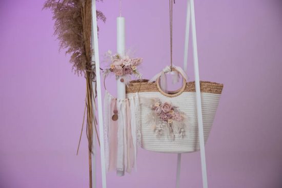 Το σετ αποτελείται από το καλάθι, την λαμπάδα και το σετ λαδιού.
