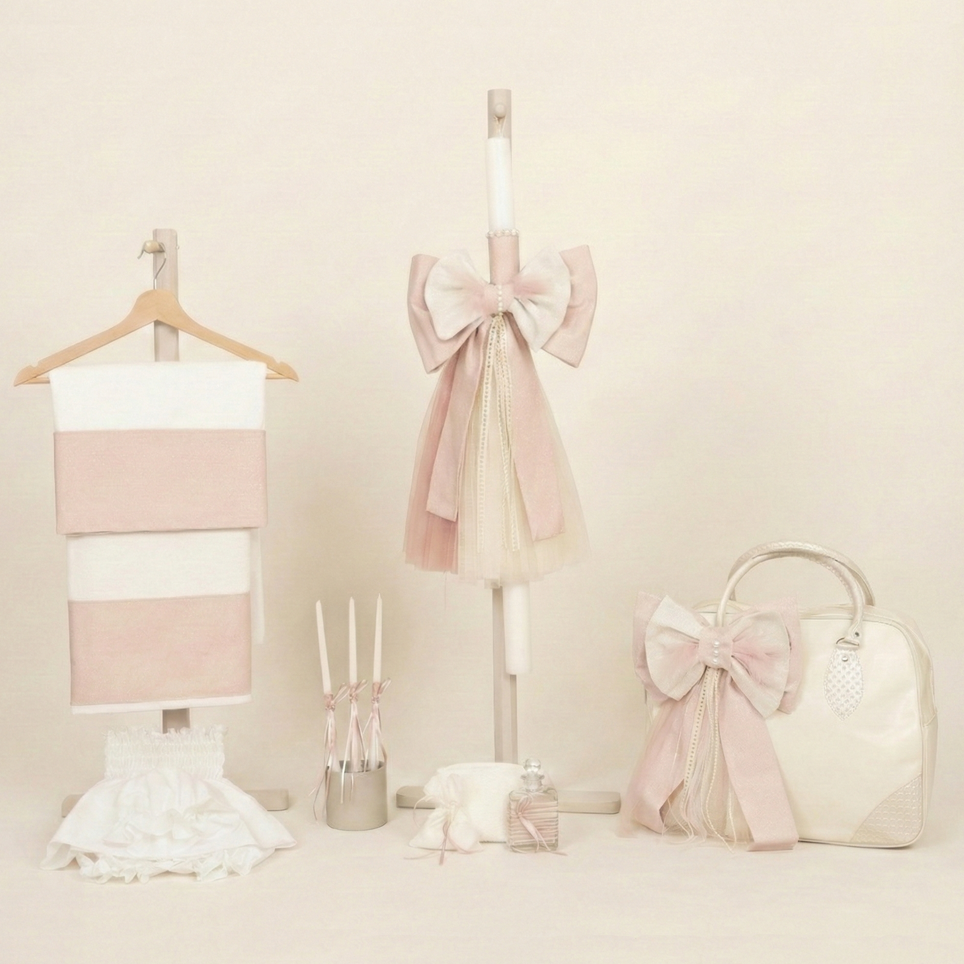 Σετ Βάπτισης για Κορίτσι με Θέμα Φιόγκος με Μονόγραμμα Γκλίτερ Σάπιο Μήλο-Offwhite 26104