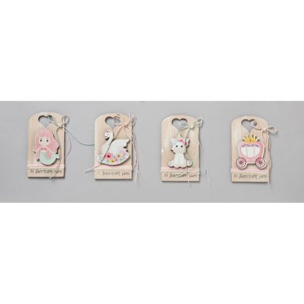 Χειροποίητες Μπομπονιέρες Βάπτισης Ξύλινή Βάση “Η Βάπτιση μου” με Φιγούρα Γοργόνα, Κύκνος, Μονόκερος, Άμαξα για Κορίτσια ΒΤ-21-32-31-33 (Υ:13cm Π:8cm) 24τμχ || Bellissimo
