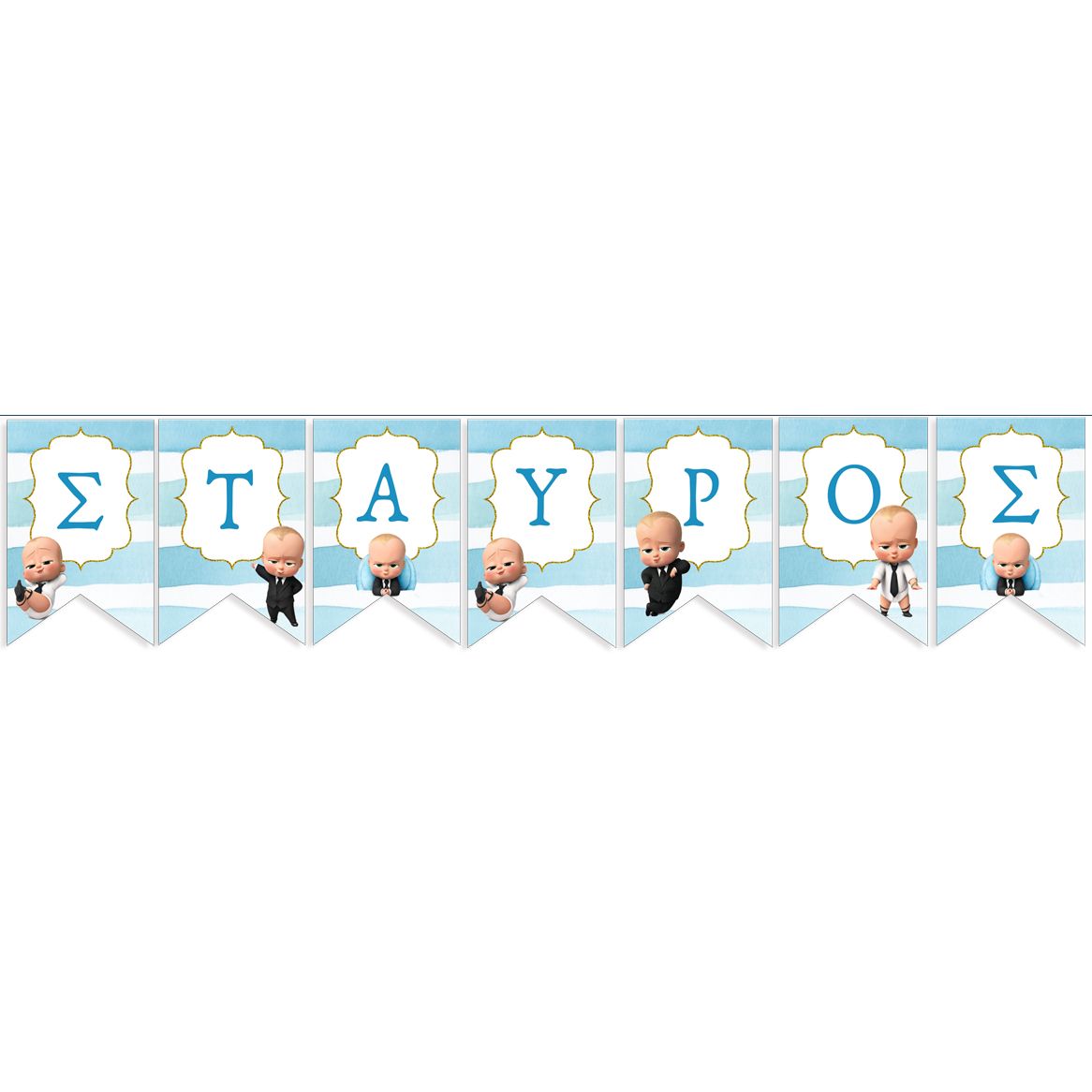 Διακοσμητικά σημαιάκια με το όνομα του μωρού σας και θέμα τον σκανδαλιάρη Μπόμπιρα.