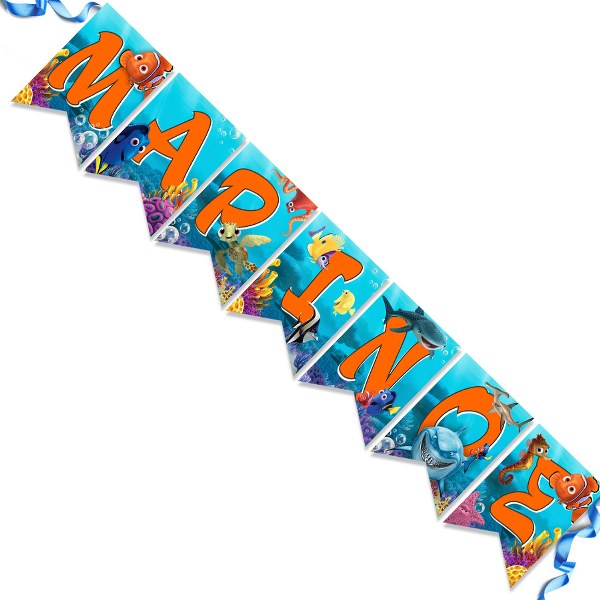 Σημαιάκια με το όνομα του παιδιού και θέμα το αγαπημένο ψαράκι κλόουν και την παρέα του!