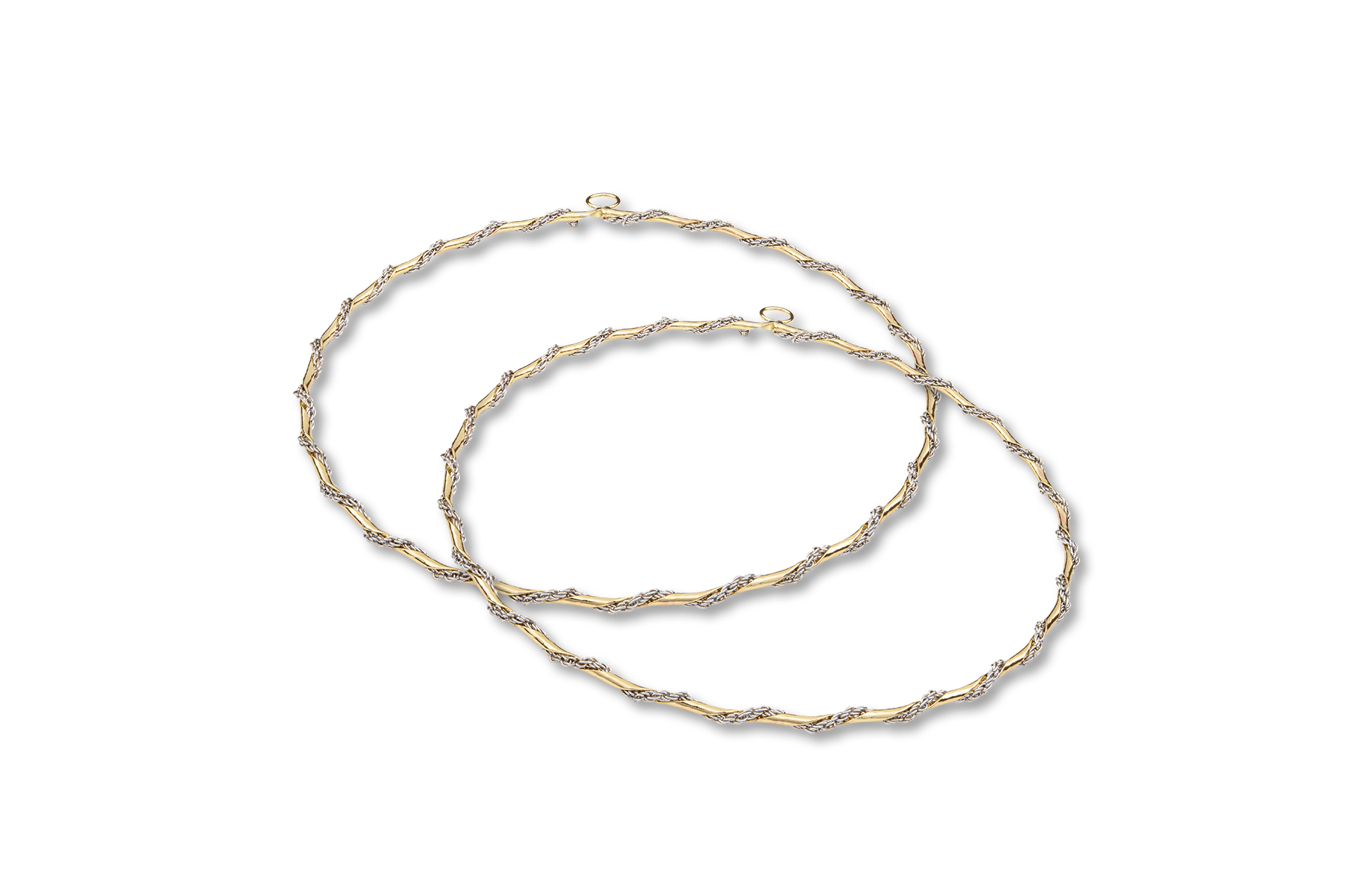 Στέφανα γάμου επάργυρα με στριφτή γυαλιστερή επίχρυση βέργα κ24 και επάργυρη αλυσίδα πλεγμένη.