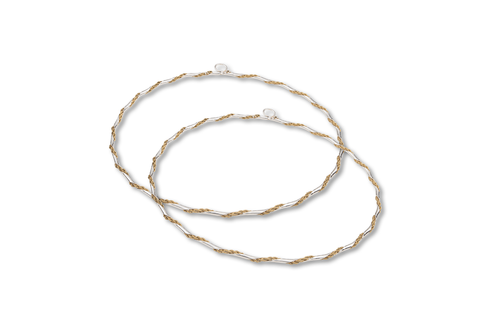 Στέφανα γάμου επάργυρα με στριφτή γυαλιστερή βέργα και επίχρυση αλυσίδα πλεγμένη.