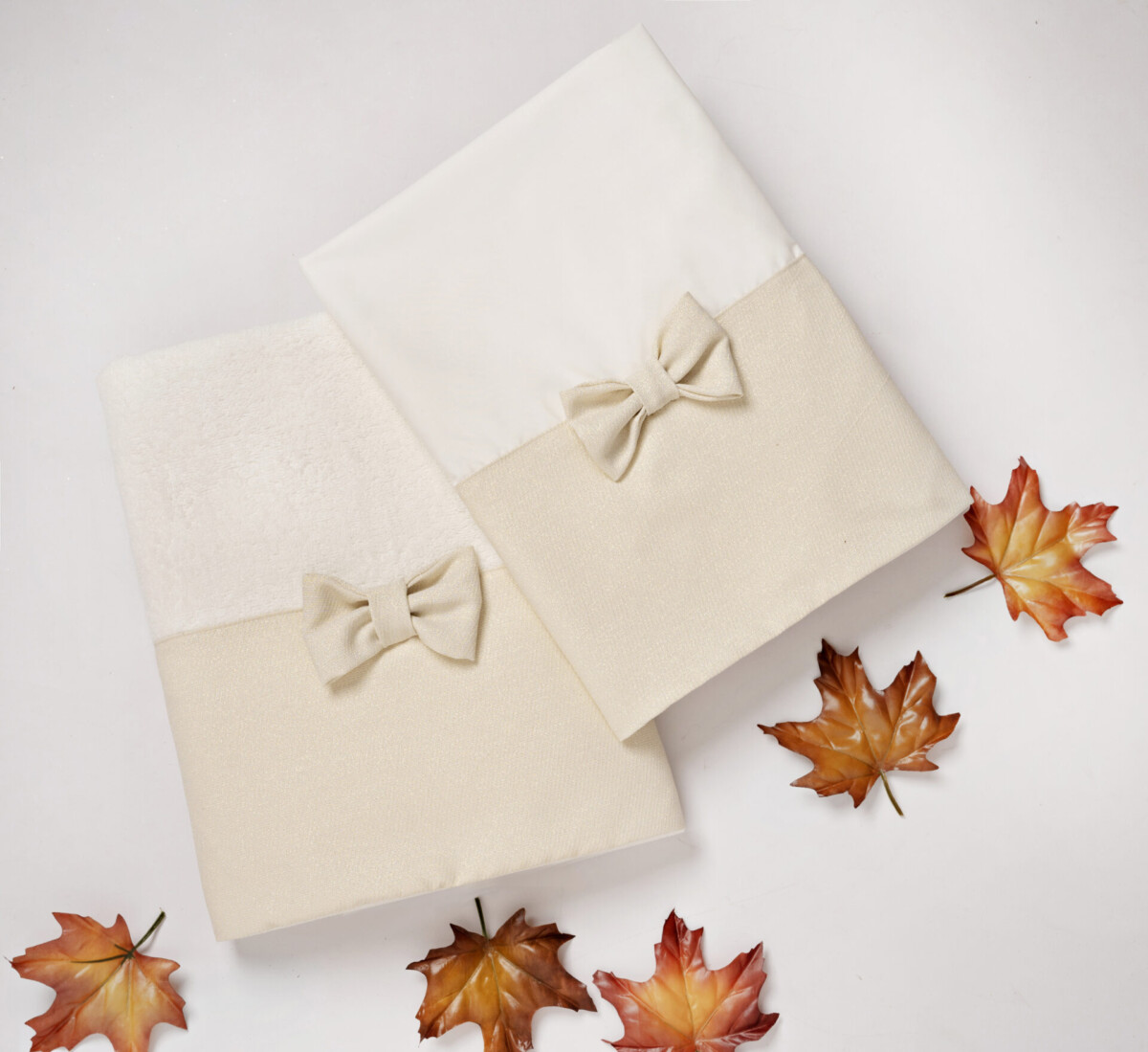 Βαμβακερά λαδόπανα σε ιβουάρ χρώμα με ύφασμα. Τα λαδόπανα περιλαμβάνουν μεγάλη πετσέτα και σεντόνι, πετσέτα μικρή και εσώρουχα.