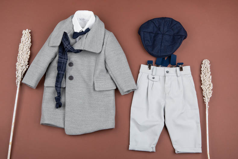 Βαπτιστικό Κοστουμάκι για αγόρι Γκρι Μπλε-Γκρι 9404A, Vinteli