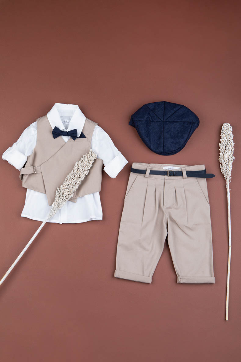 Βαπτιστικό Κοστουμάκι για αγόρι Λαδί-Ταμπά 9406, Vinteli