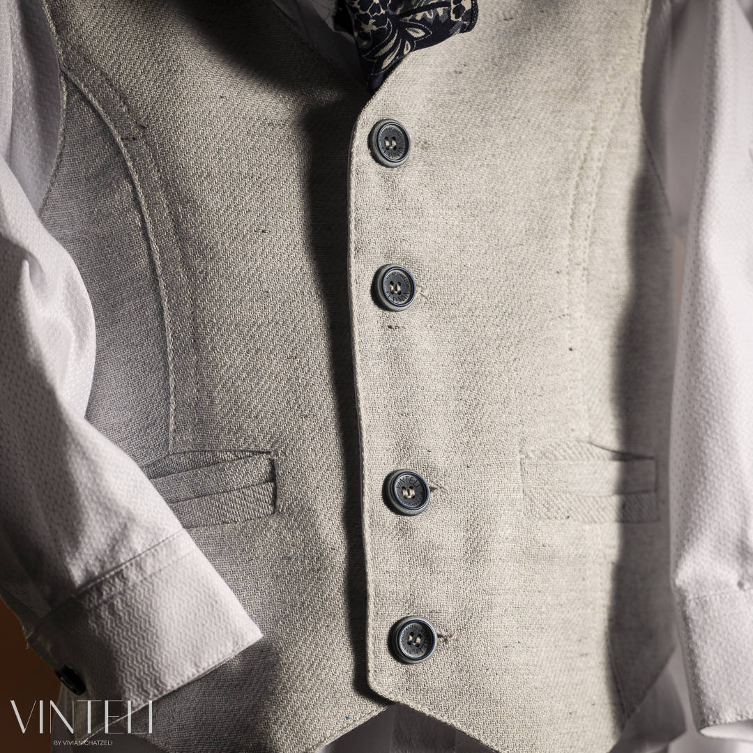 Βαπτιστικό Κοστουμάκι για αγόρι Γκρι Μπλε-Γκρι 9404A, Vinteli