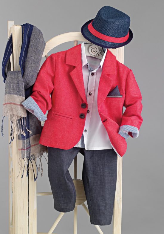 Βαπτιστικό Κοστουμάκι Κεραμιδί – Γκρί για αγόρι 5007, Vinteli