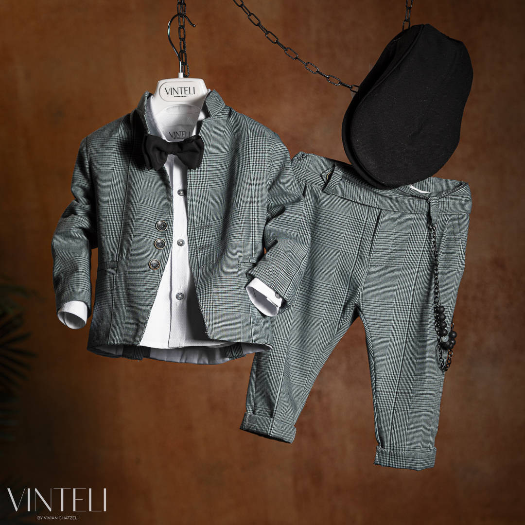 Βαπτιστικό Κοστουμάκι για αγόρι Γκρι Μπλε-Γκρι 9404A, Vinteli