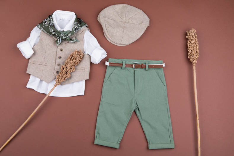 Βαπτιστικό Κοστουμάκι για αγόρι Λαδί-Ταμπά 9406, Vinteli