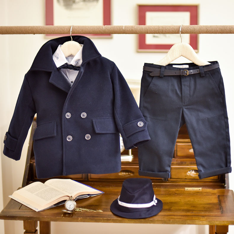 Βαπτιστικό Παλτό Montgomery Wool Μπλε-Γκρι για Αγόρι CO-054, Angel Wings