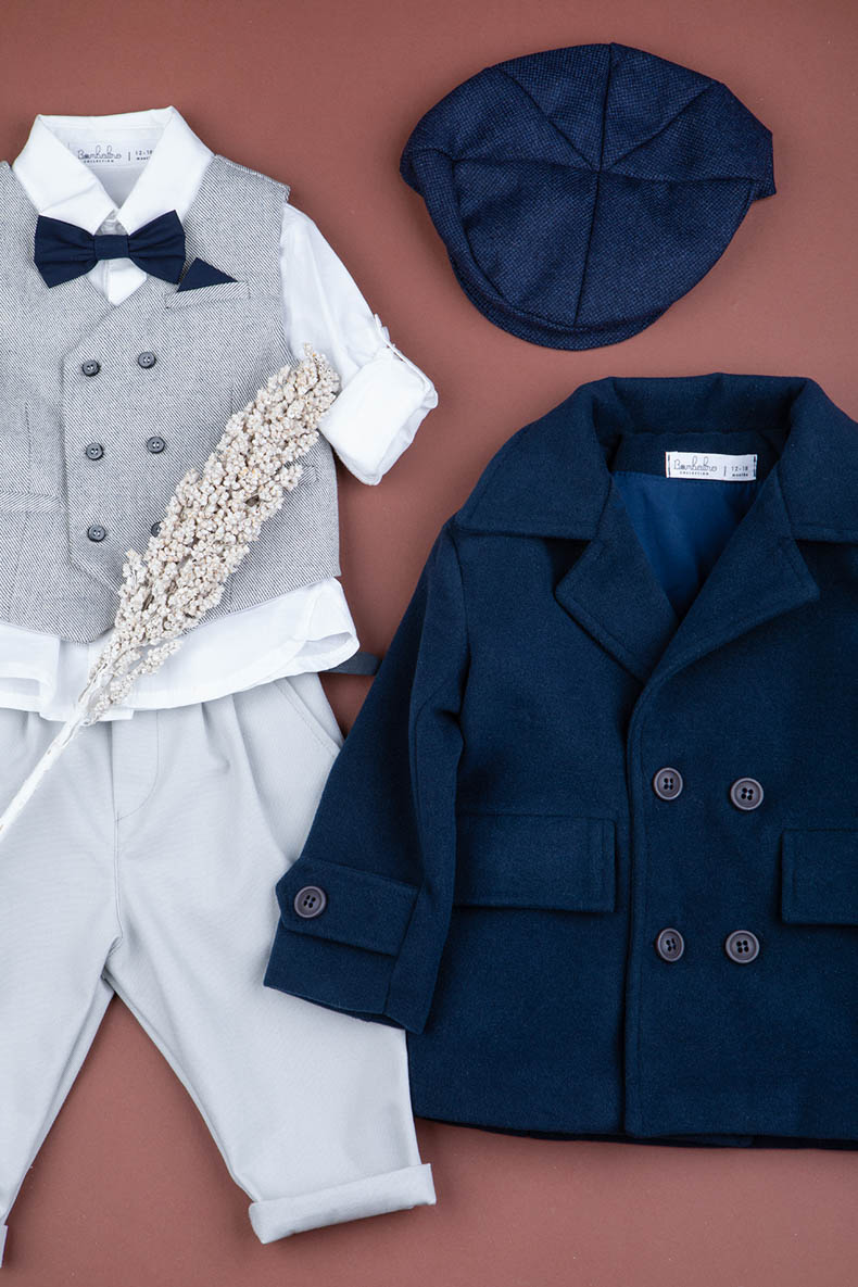Βαπτιστικό Παλτό Montgomery Wool Μπλε-Γκρι για Αγόρι CO-054, Angel Wings