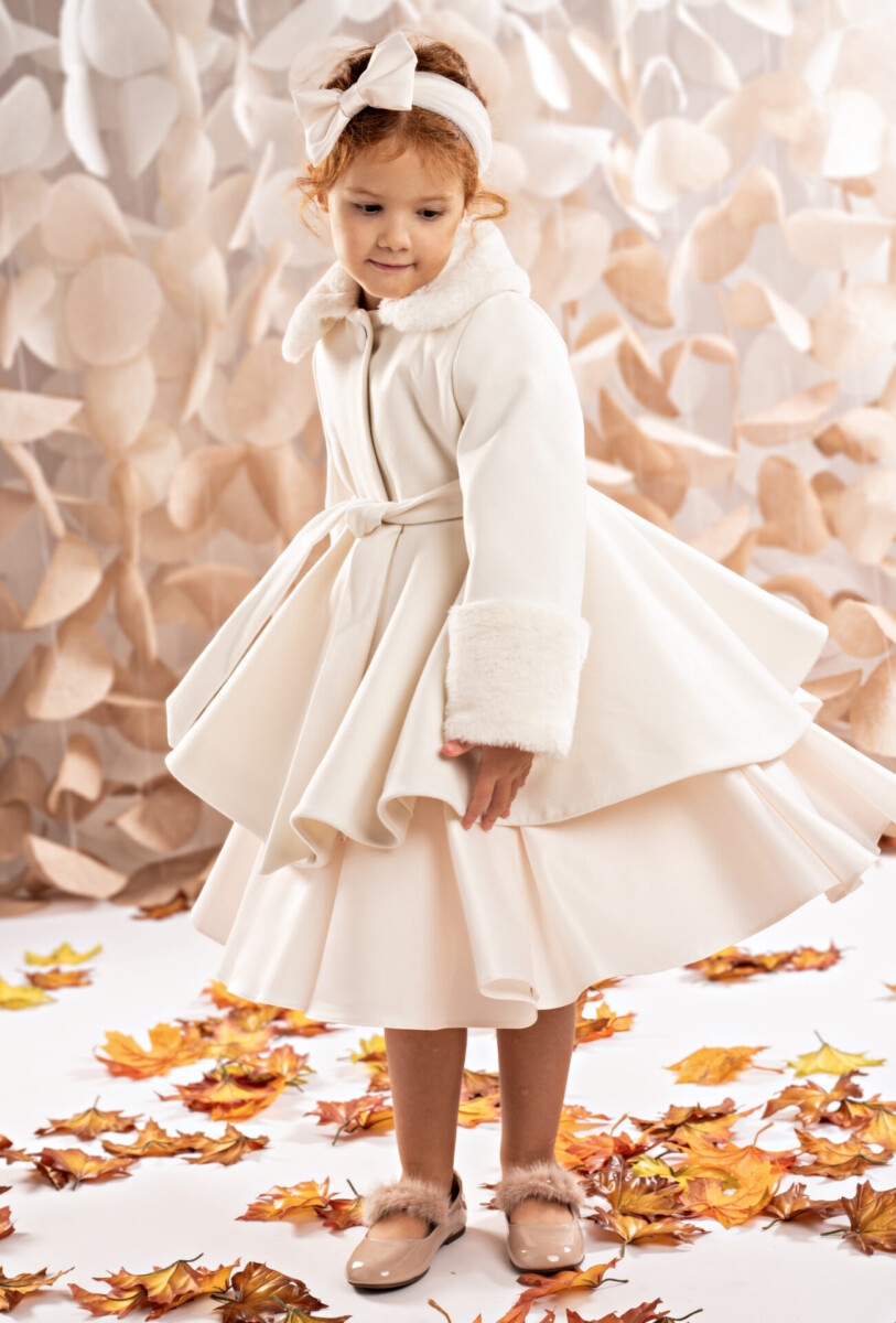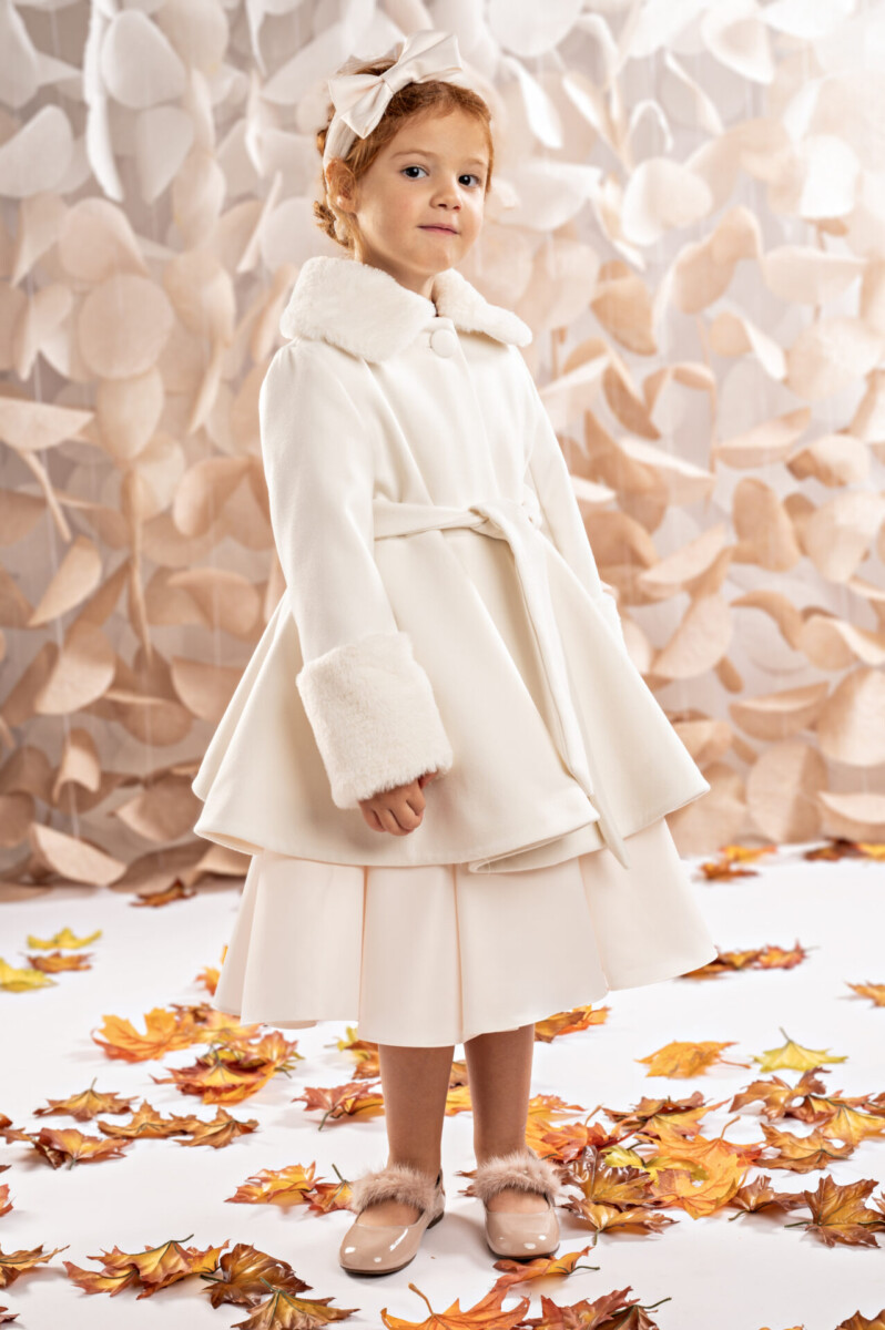 Ένα υπέροχο μεσάτο παλτό σε off white χρώμα με λεπτομέρειες από γούνα στον γιακά και τις μανσέτες, που προσθέτουν ζεστασιά και πολυτέλεια. Η «φούστα» σε γραμμή ομπρέλα χαρίζει κίνηση και χάρη, ενώ η εξωτερική ζώνη εξασφαλίζει ιδανική εφαρμογή. Ένα παλτό έτοιμο να συνοδεύσει τις πιο ιδιαίτερες χειμερινές στιγμές.