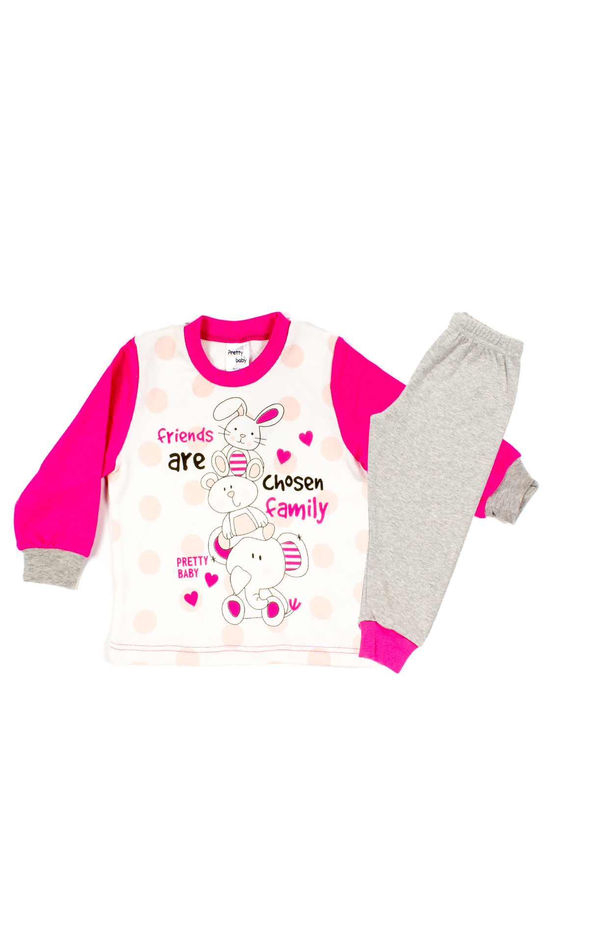 Βρεφική Χειμερινή Πιτζάμα Family Mouse για Κορίτσι Ροζ-Εκρού, Βαμβακερή 100% - Pretty Baby