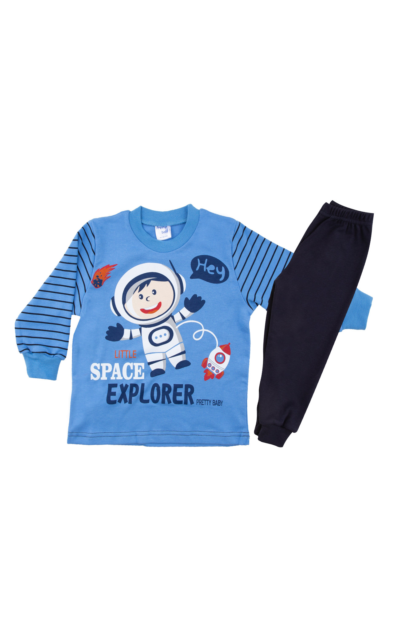 Πιτζάμα Βρεφική – Παιδική Χειμερινή με Τύπωμα Αστροναύτης Μπλέ Βαμβακερή 100% | Pretty Baby