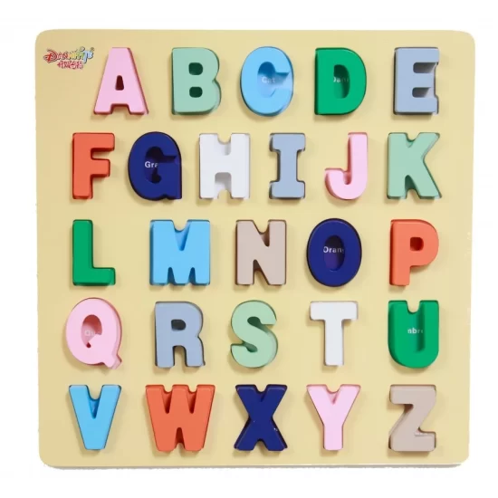 Το ξύλινο ταμπλό με τα γράμματα της αγγλικής αλφαβήτου είναι κατάλληλο για παιδιά προσχολικής ηλικίας που θέλουν να έχουν μια πρώτη επαφή με τα αγγλικά και να μάθουν έτσι και τις πρώτες τους λεξούλες . Το ταμπλό αποτελείται από τα 26 κεφαλαία γράμματα της αγγλικής αλφαβήτου.