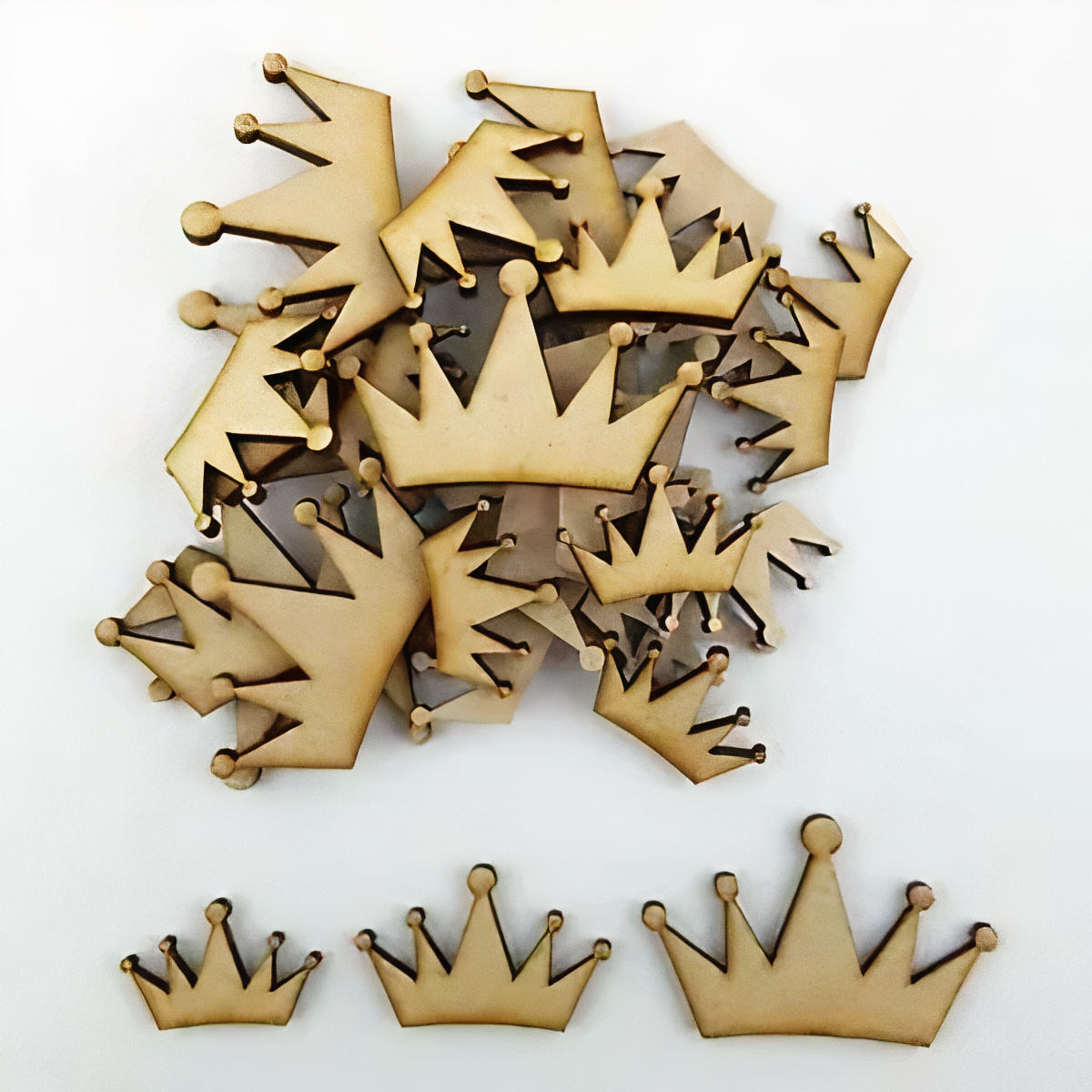 Ξύλινες μικρές κορώνες σε φυσικό άβαφο ξύλο, ιδανικά για διακοσμήσεις.
