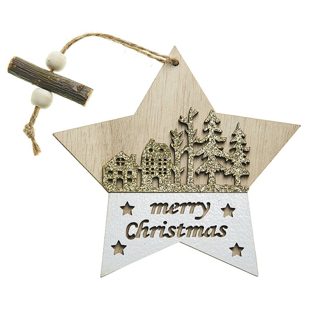 Ξύλινο Μεγάλο Αστέρι Στολισμένο & Ζωγραφισμένο στο Χέρι (12cm) | ΖΤΡ30ΓΧ3