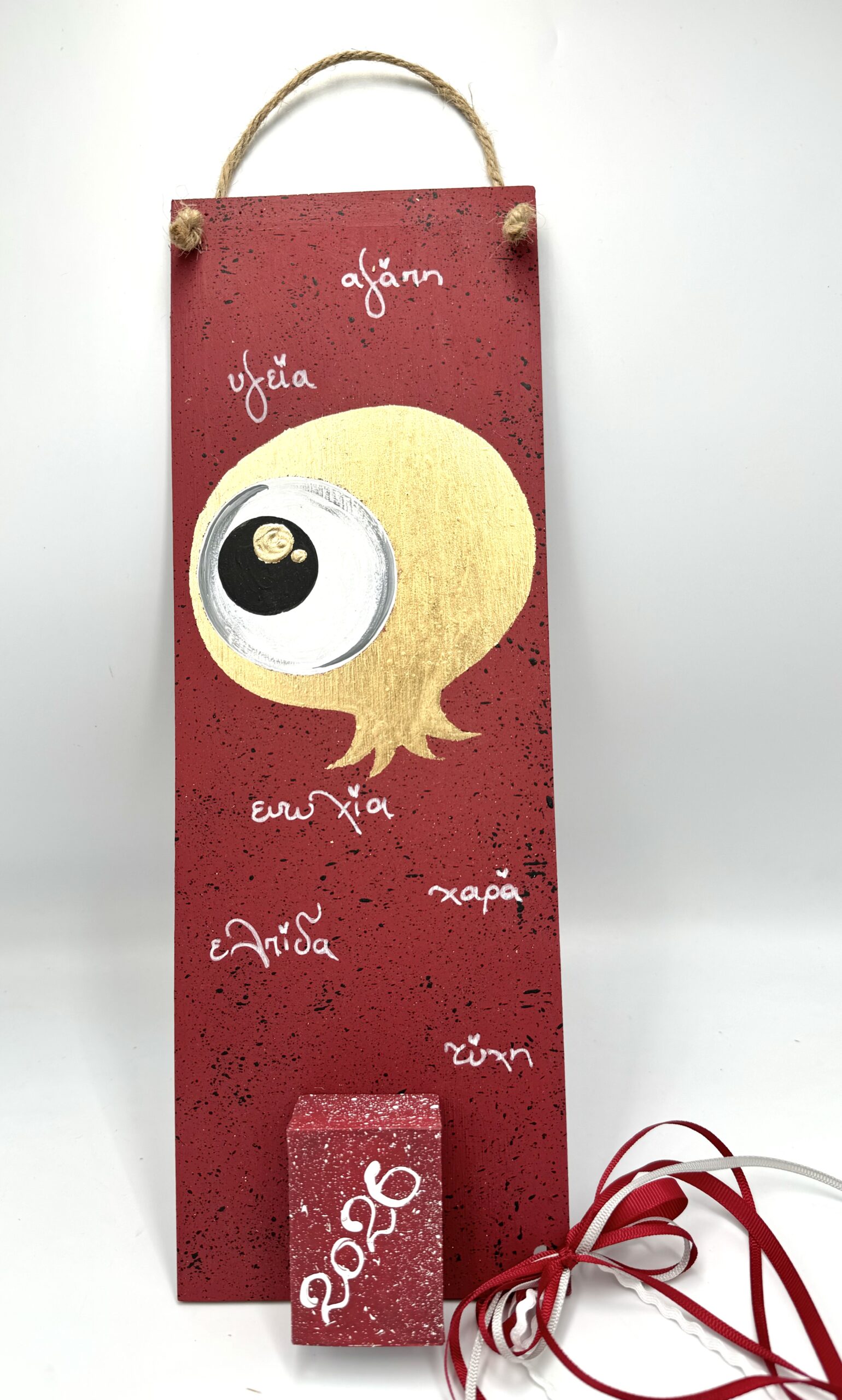 ΖΤΡ101Χ8 | Κρεμαστό Ξύλινο Κάδρο με Ημερολόγιο Στολισμένο & Ζωγραφισμένο στο Χέρι (35x12cm)